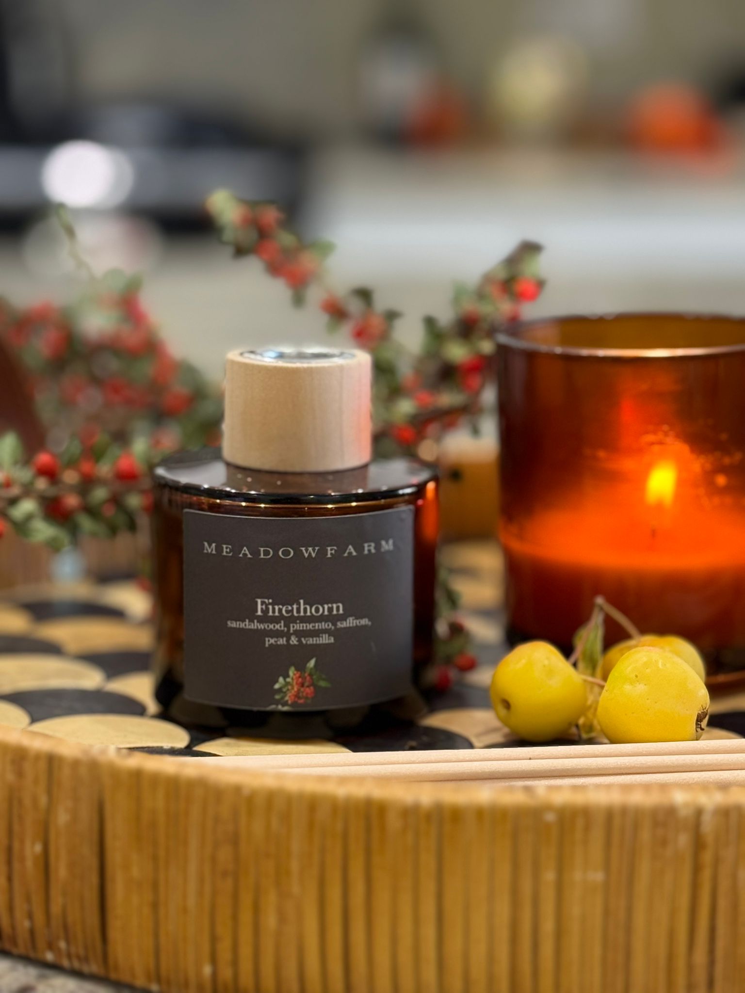 A multi layered scent that evokes feelings of crisp Autumn air and cosy evenings with a hot drink by the fire. With spicy pimento, rich sandalwood, peat, juicy crabapples and warming vanilla, these carefully chosen ingredients move us beyond traditional pumpkin spice and deliver a more grounded sophisticated fragrance.